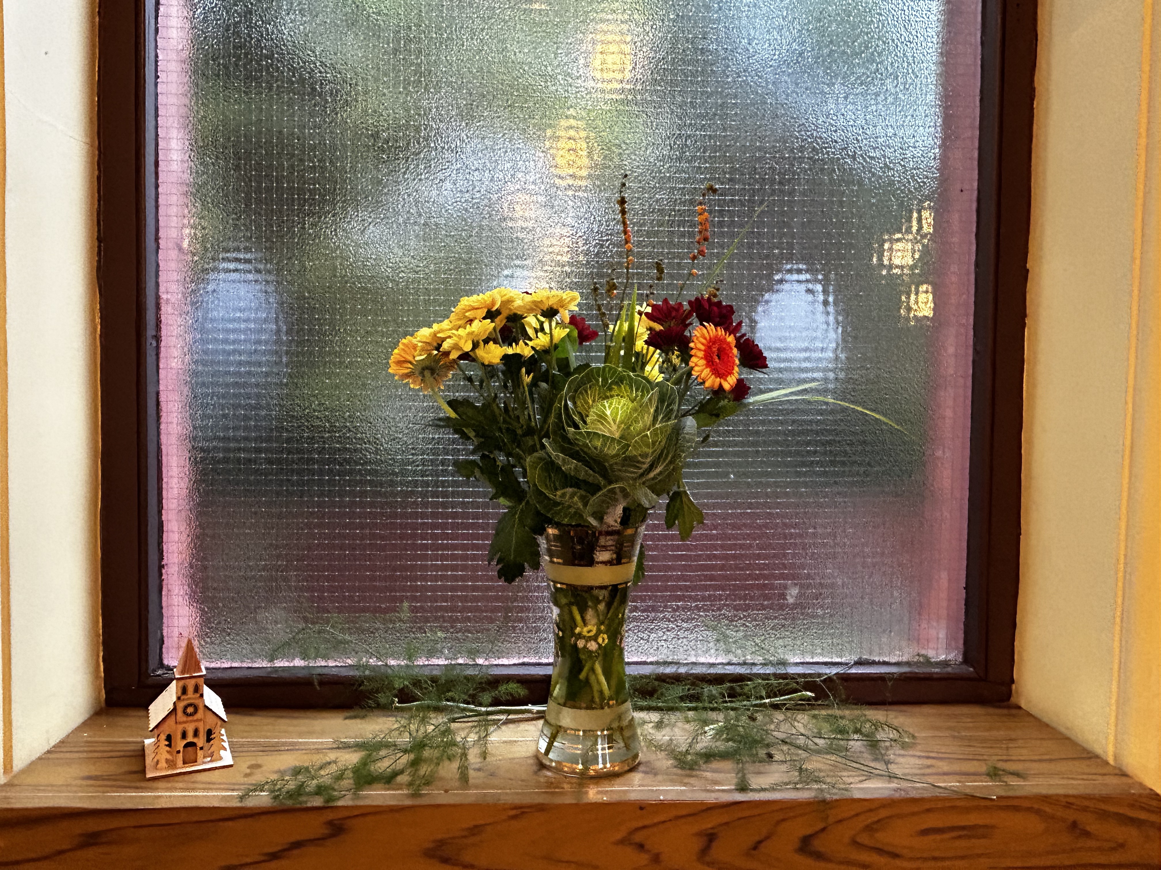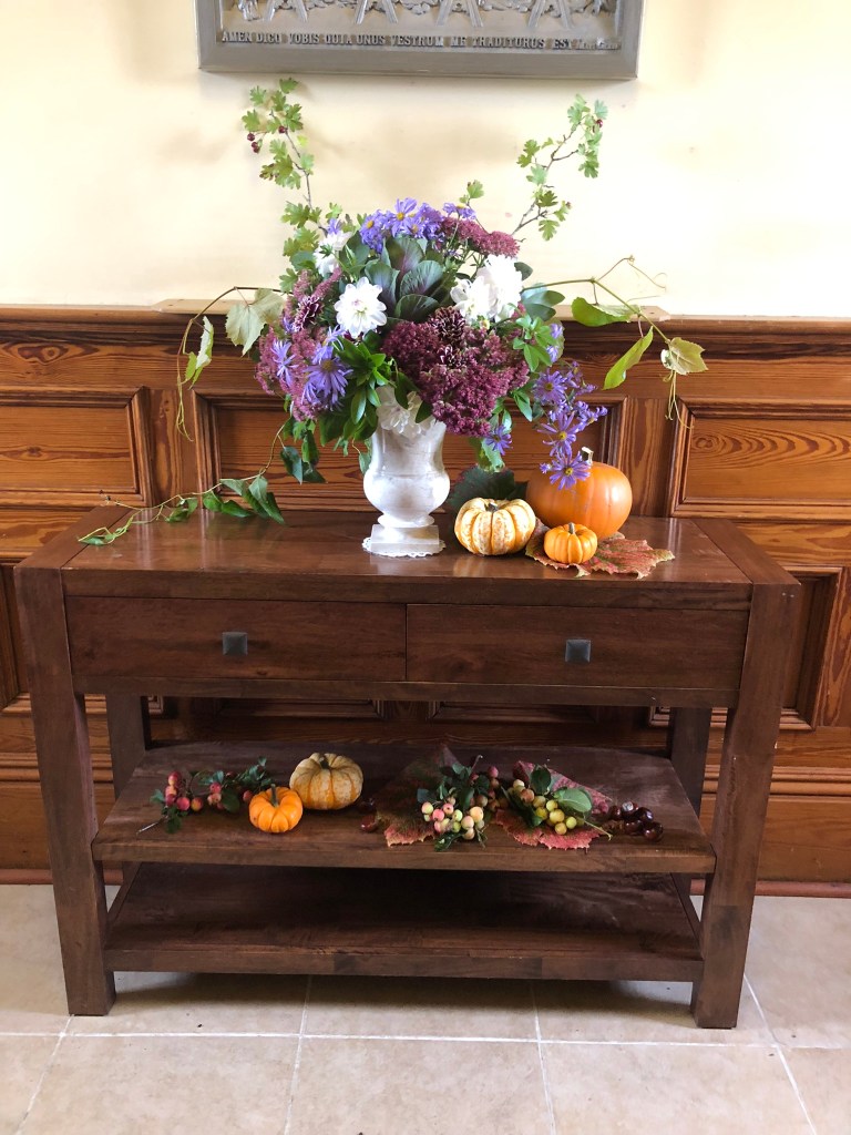 This weekend we had a bit of a tidy up. The grounds were cleared of weeds, shrubs were pruned and paintwork was spruced up. Indoors a storage cupboard was sorted and amongst the contents were some documents of some considerable age that help to shed some light on our church’s history. They are an unexpected treasure trove – in some cases with links to families that are still associated with our church today. Those documents will be properly conserved and will be shared on this website at some time in the future. But for now, here’s a photo, taken just this evening, of a glorious floral display on our alter for this evening’s service. A reminder of the simple, God-given beauties all around us.