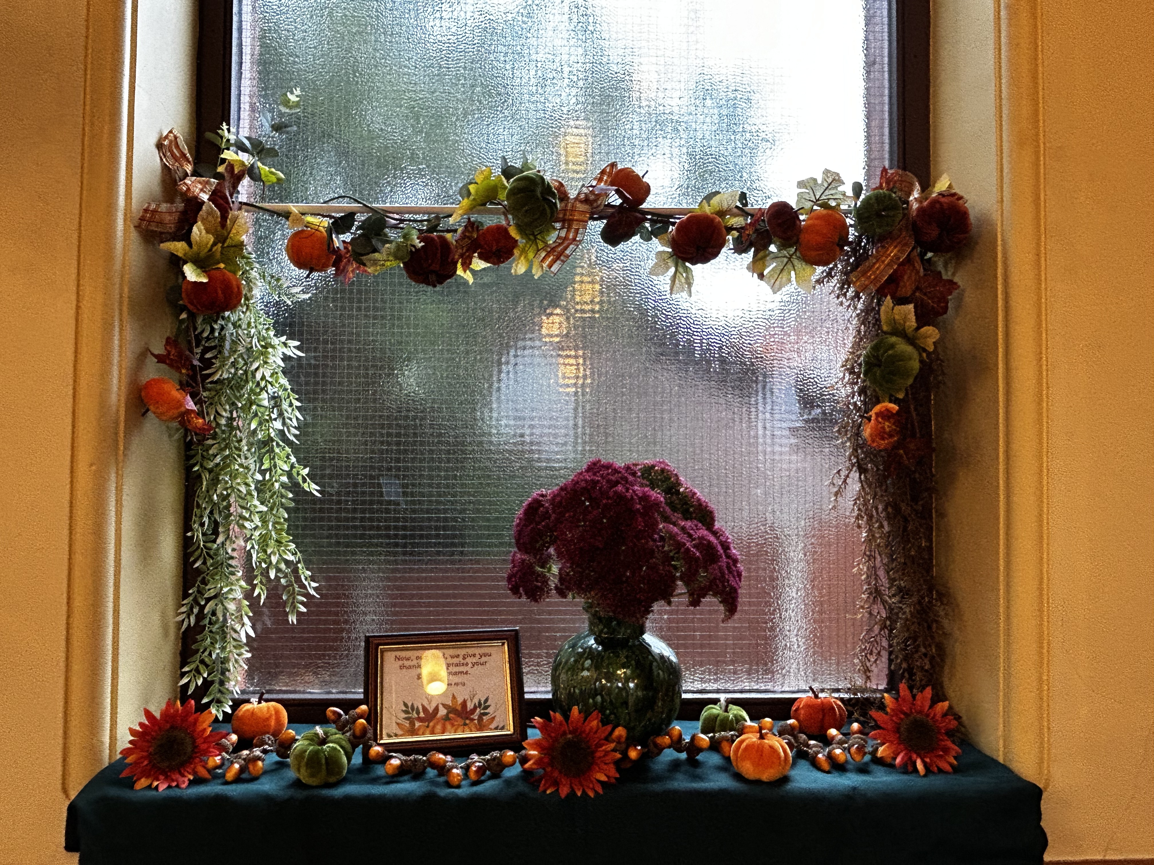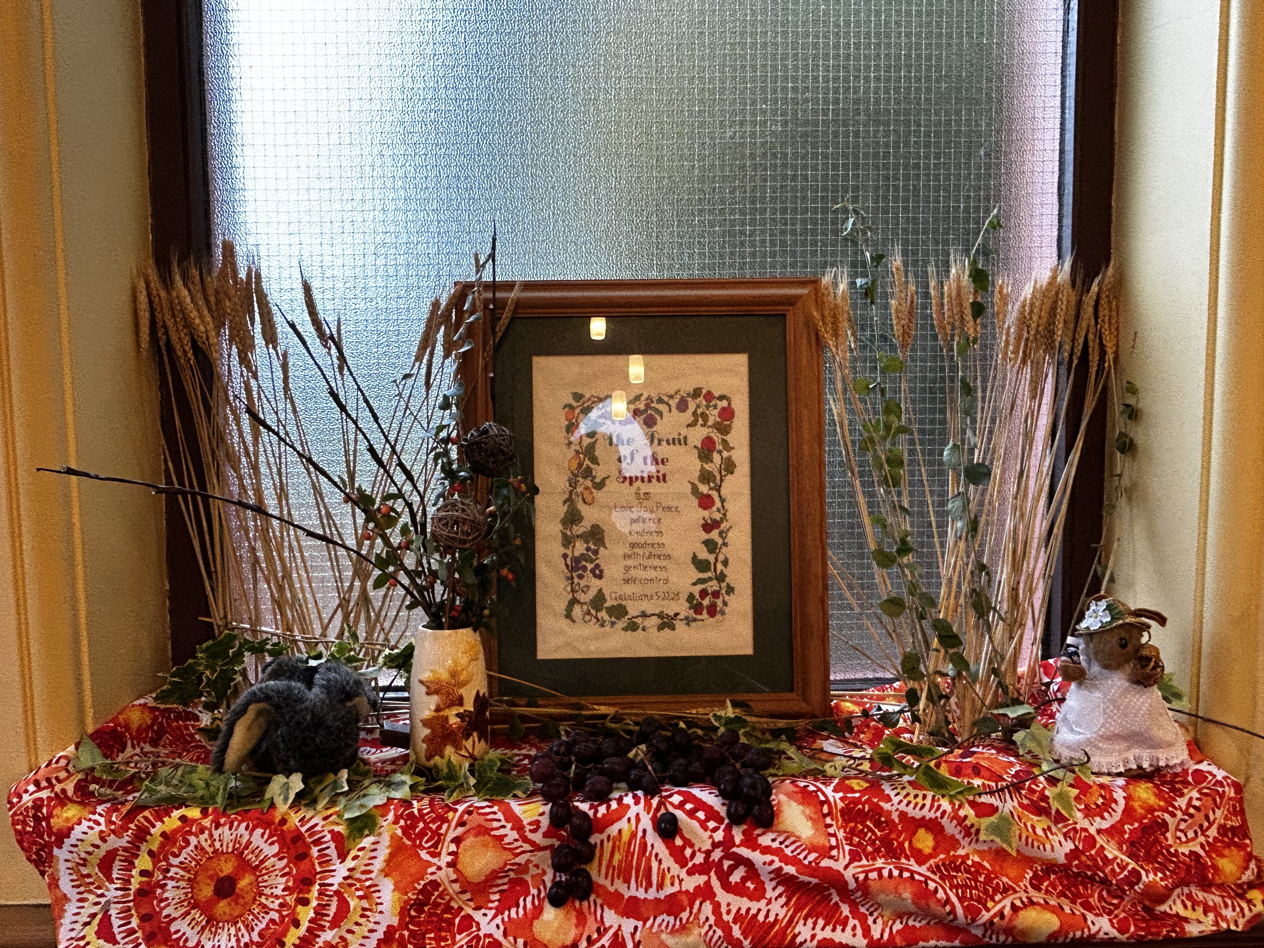 In addition each window in the church was decorated with a harvest theme. Photos of all of the displays and windows are shown in our Gallery number 3,