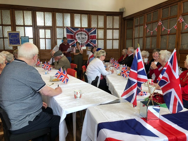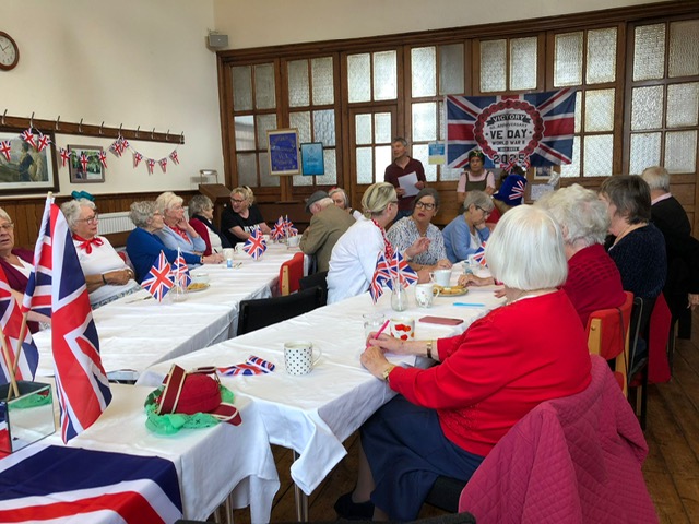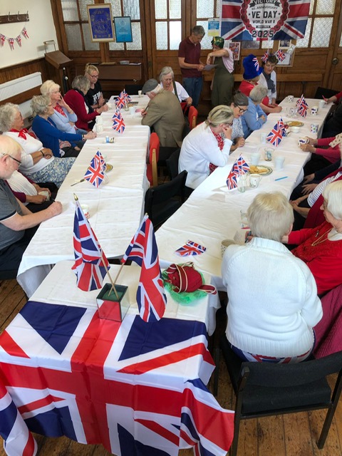 On VE Day – Thursday 8th May – we had our usual coffee morning and lunch but it had a distinctly wartime flavour, with all the old ration-book favourites like spam, beef paste and blancmange, as well as some delicious and very fresh cakes. Not only did we have food & drink on offer but a grand old sing-song courtesy of Alan Percival was enjoyed by everybody. Here are some photos of the day.