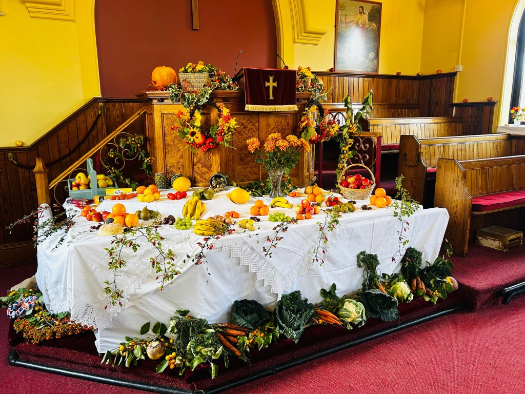 On Sunday 5th October we held our Harvest Festival celebrations as a way of remembering God’s goodness and provision towards us, honouring the beauty and wonder of His creation. Here are some photos of the church, splendidly decorated by members of our congregation, we hope you enjoy them.