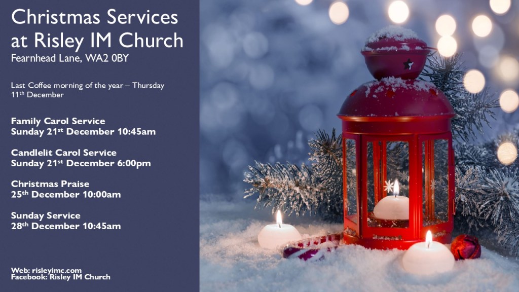 On Sunday 18th December we will have two carol services. In the morning at 10:45 we will have a family carol service and then in the evening at 6:00pm we will have our candlelit carol service. We will also serve refreshments after the evening service. The speaker at both services will be our church president, Chris Mayes.